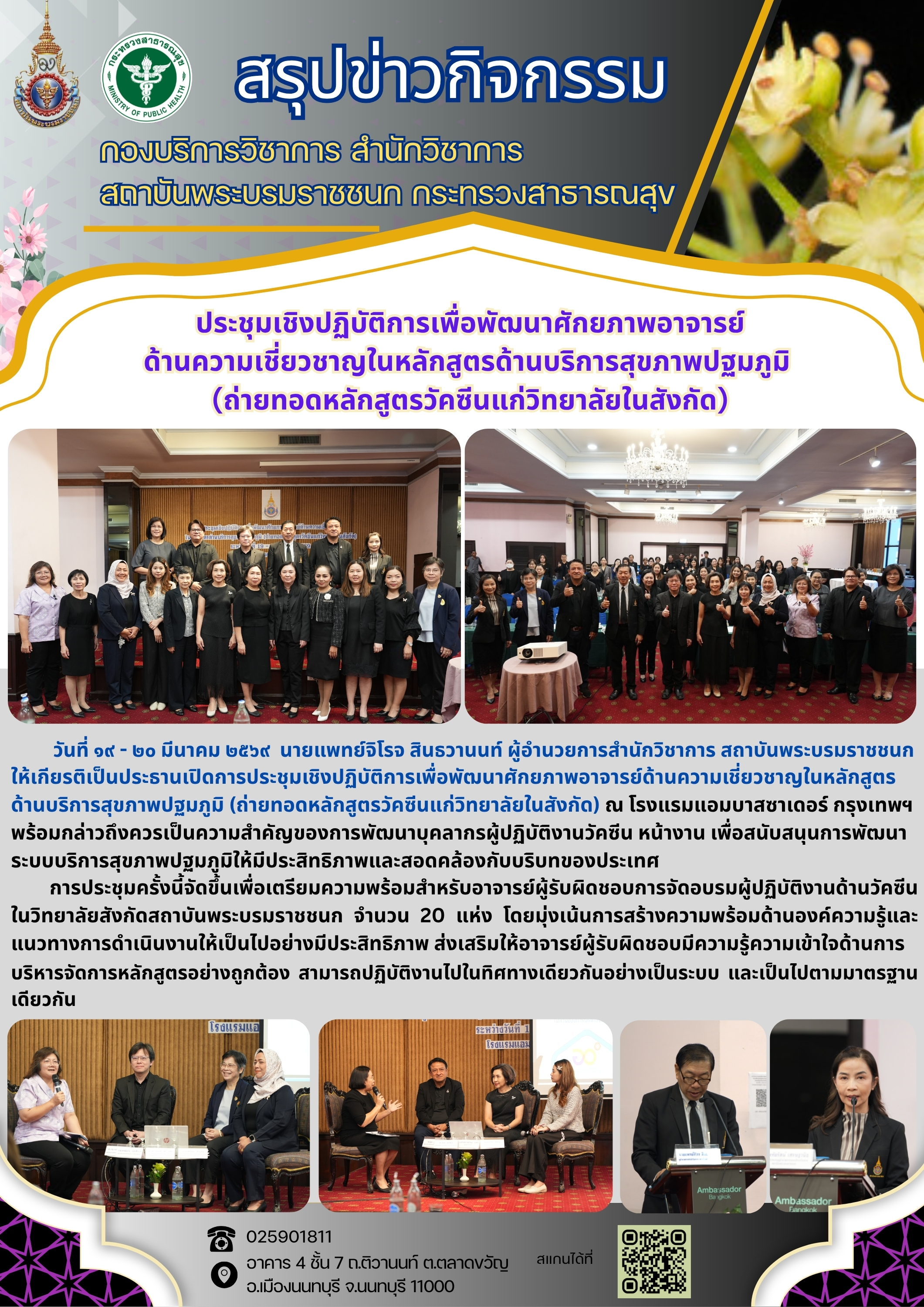 ประชุมเชิงปฏิบัติการเพื่อพัฒนาศักยภาพอาจารย์ ด้านความเชี่ยวชาญในหลักสูตรด้านบริการสุขภาพปฐมภูมิ (ถ่ายทอดหลักสูตรวัคซีนแก่วิทยาลัยในสังกัด)