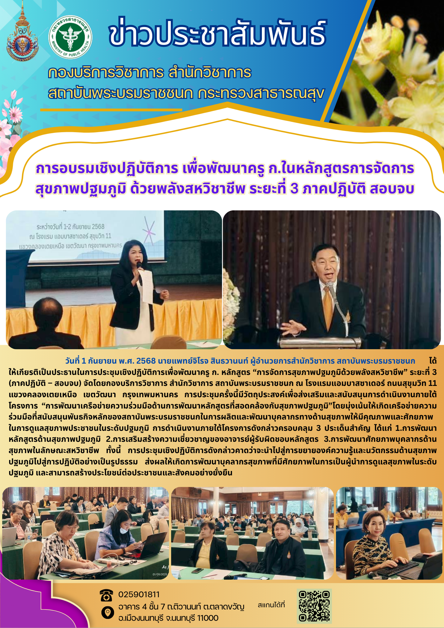 การอบรมเชิงปฏิบัติการ เพื่อพัฒนาครู ก.ในหลักสูตรการจัดการสุขภาพปฐมภูมิ ด้วยพลังสหวิชาชีพ ระยะที่ 3 ภาคปฏิบัติ สอบจบ